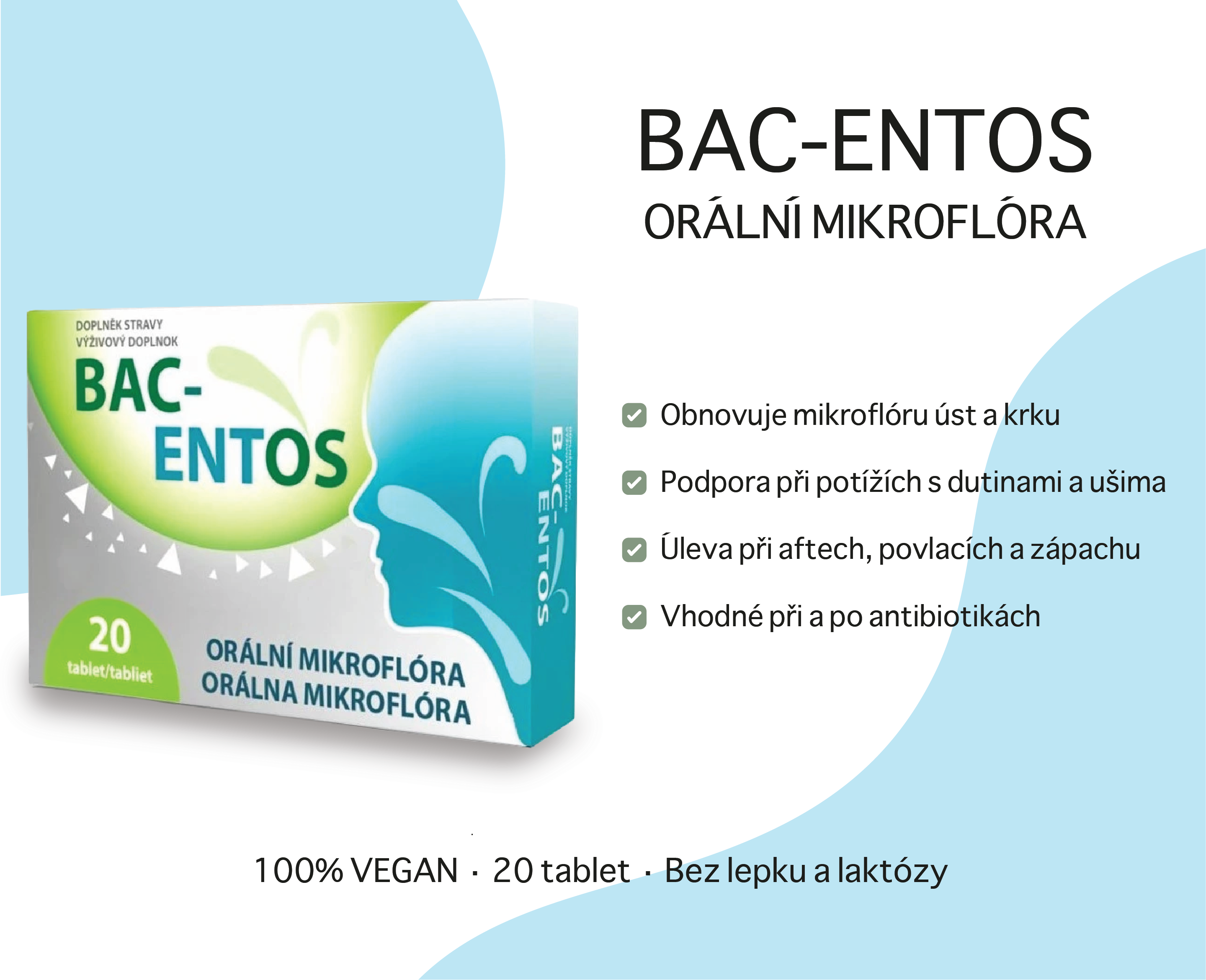 Přípravek BAC-ENTOS® orální mikroflóra 20 tablet je registrovaný jako doplněk stravy.