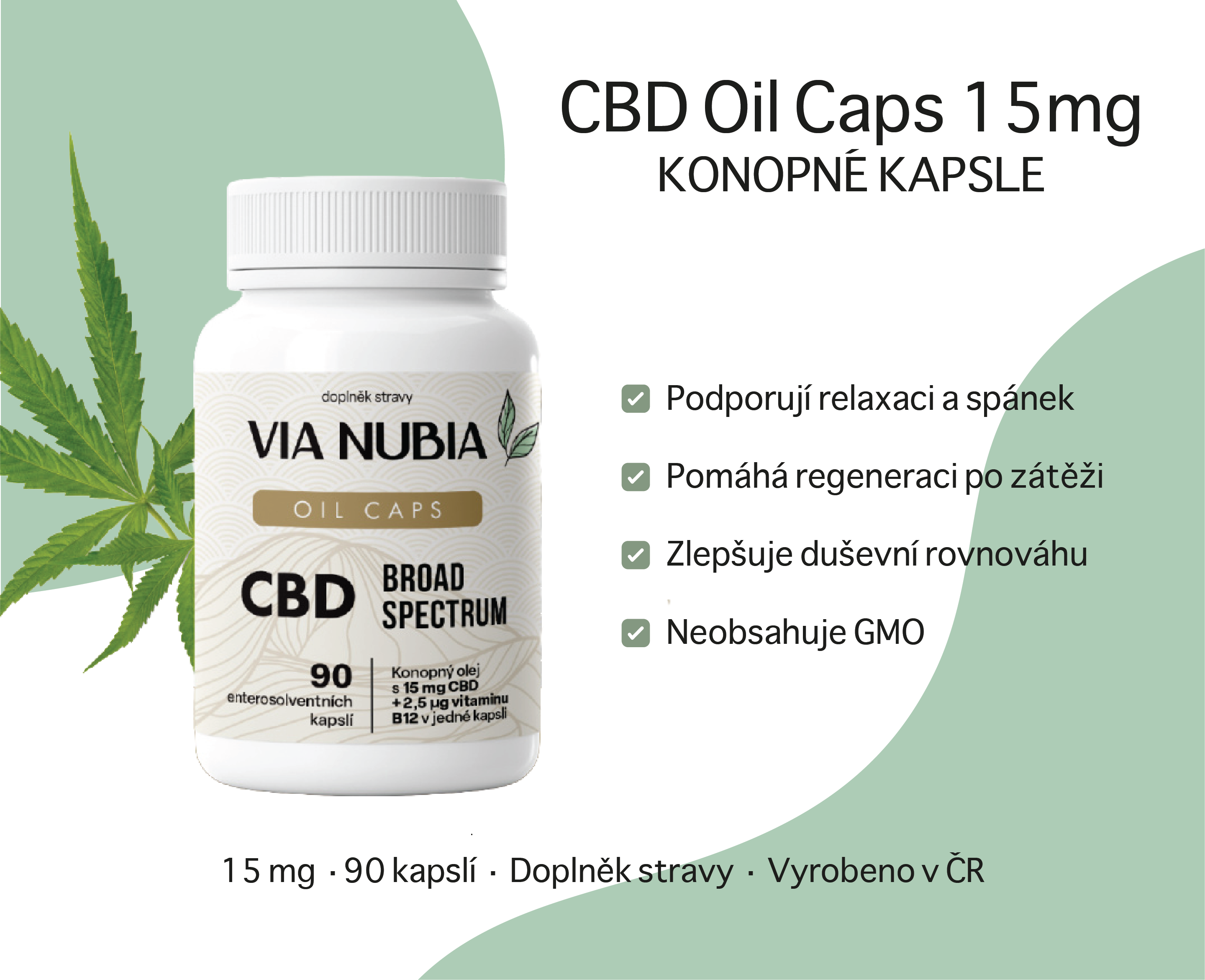 Konopné kapsle – BROAD Spectrum OIL CAPS 15 mg + vitamin B12, 90 kapslí