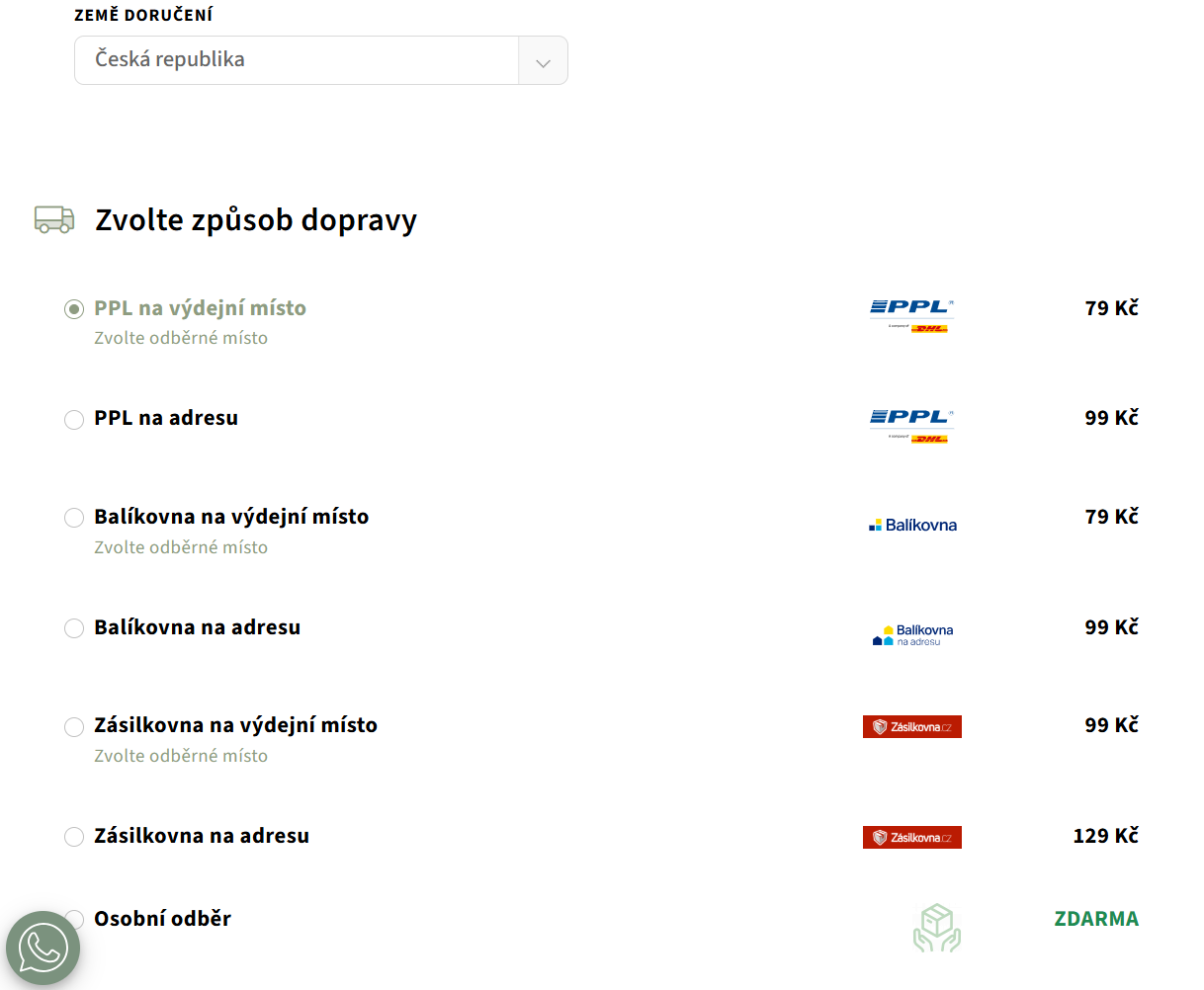 - Doručení je možné do sítě více než 20 000 výdejních míst společností PPL, Balíkovna a Zásilkovna po celé České republice.