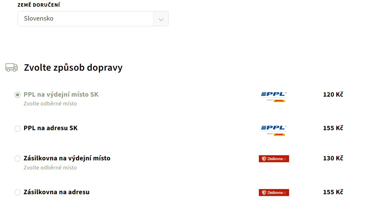 - Doručení je možné do sítě tisíců výdejních míst společností PPL a Zásilkovna po celém Slovensku.