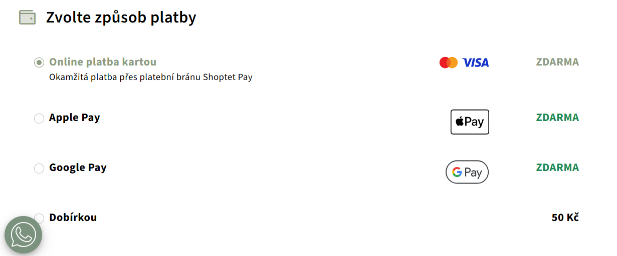 *Během placení pomocí služby GPay nebo Apple Pay můžete být ještě přesměrován na webovou stránku vaší banky, z důvodu potvrzení bezpečnostního procesu 3D Secure.